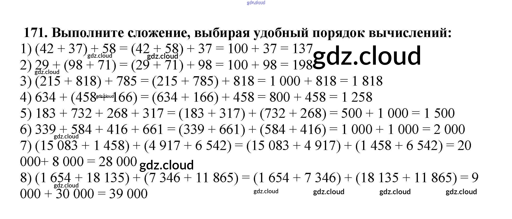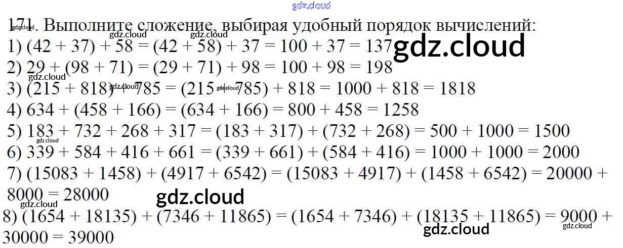 Ответ на задание 171 Учебник Математика за 5 (пятый) класс Мерзляк, Полонский, Якир Алгоритм успеха 2016