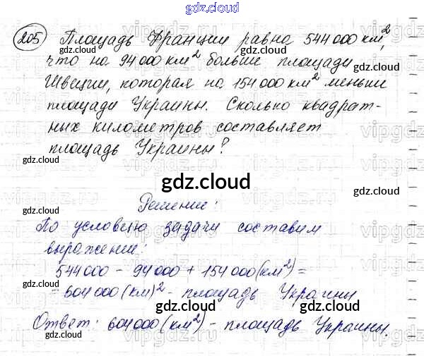 Ответ на задание 205 Учебник Математика за 5 (пятый) класс Мерзляк, Полонский, Якир Алгоритм успеха 2016