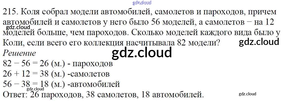Ответ на задание 215 Учебник Математика за 5 (пятый) класс Мерзляк, Полонский, Якир Алгоритм успеха 2016