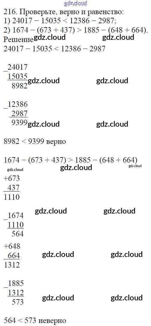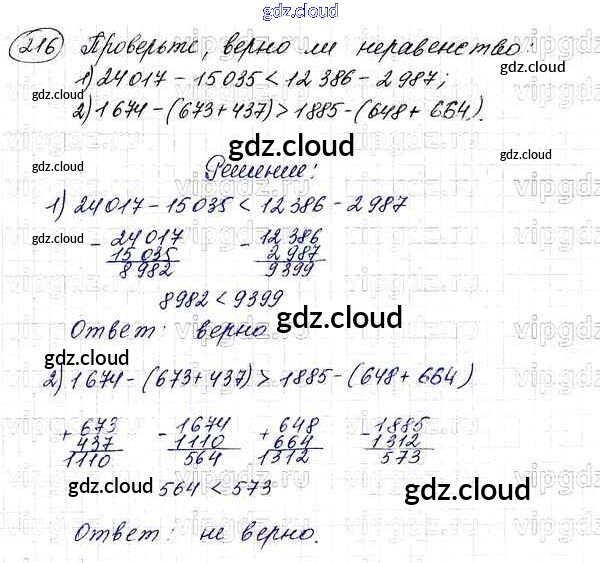 Ответ на задание 216 Учебник Математика за 5 (пятый) класс Мерзляк, Полонский, Якир Алгоритм успеха 2016