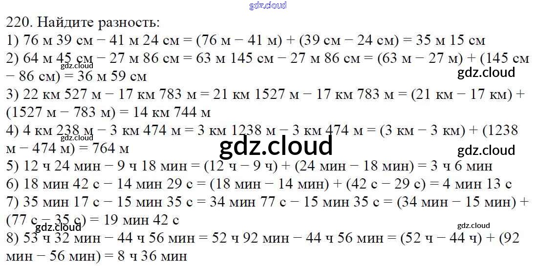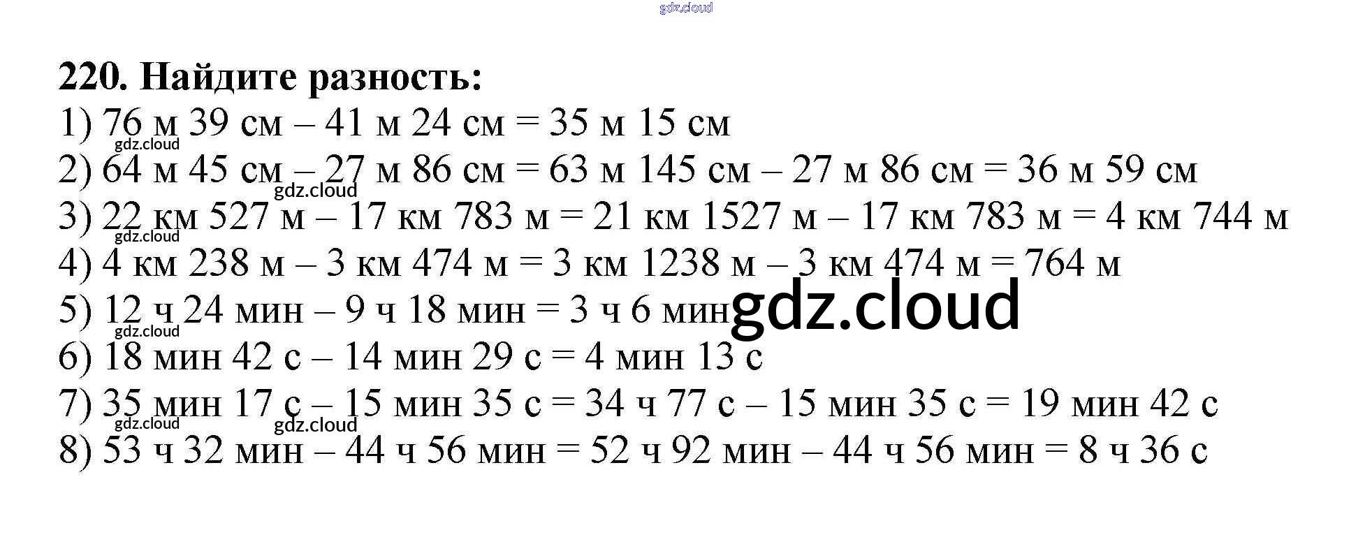 Ответ на задание 220 Учебник Математика за 5 (пятый) класс Мерзляк, Полонский, Якир Алгоритм успеха 2016