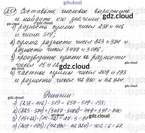 Ответ на задание 251 Учебник Математика за 5 (пятый) класс Мерзляк, Полонский, Якир Алгоритм успеха 2016