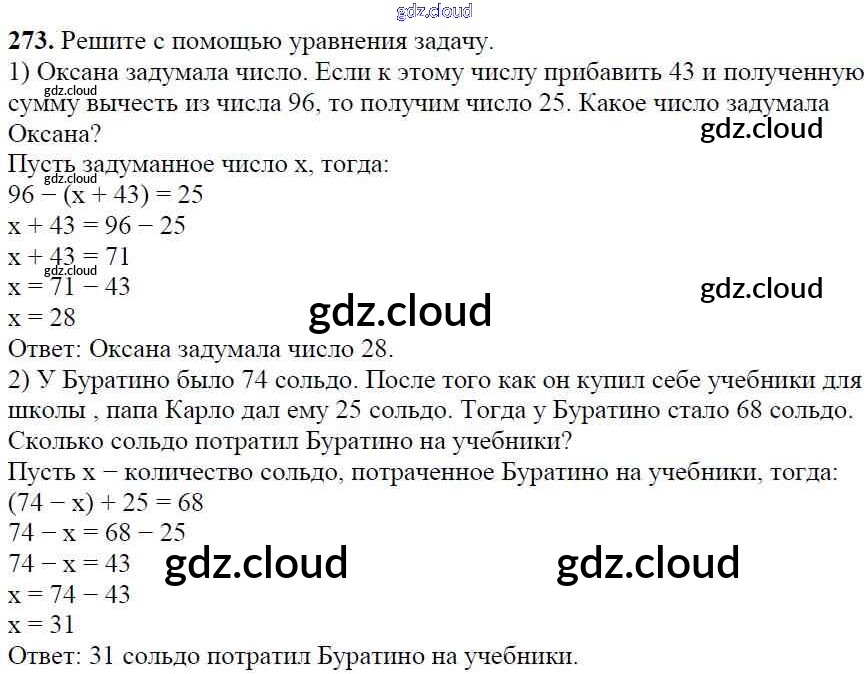 Ответ на задание 273 Учебник Математика за 5 (пятый) класс Мерзляк, Полонский, Якир Алгоритм успеха 2016
