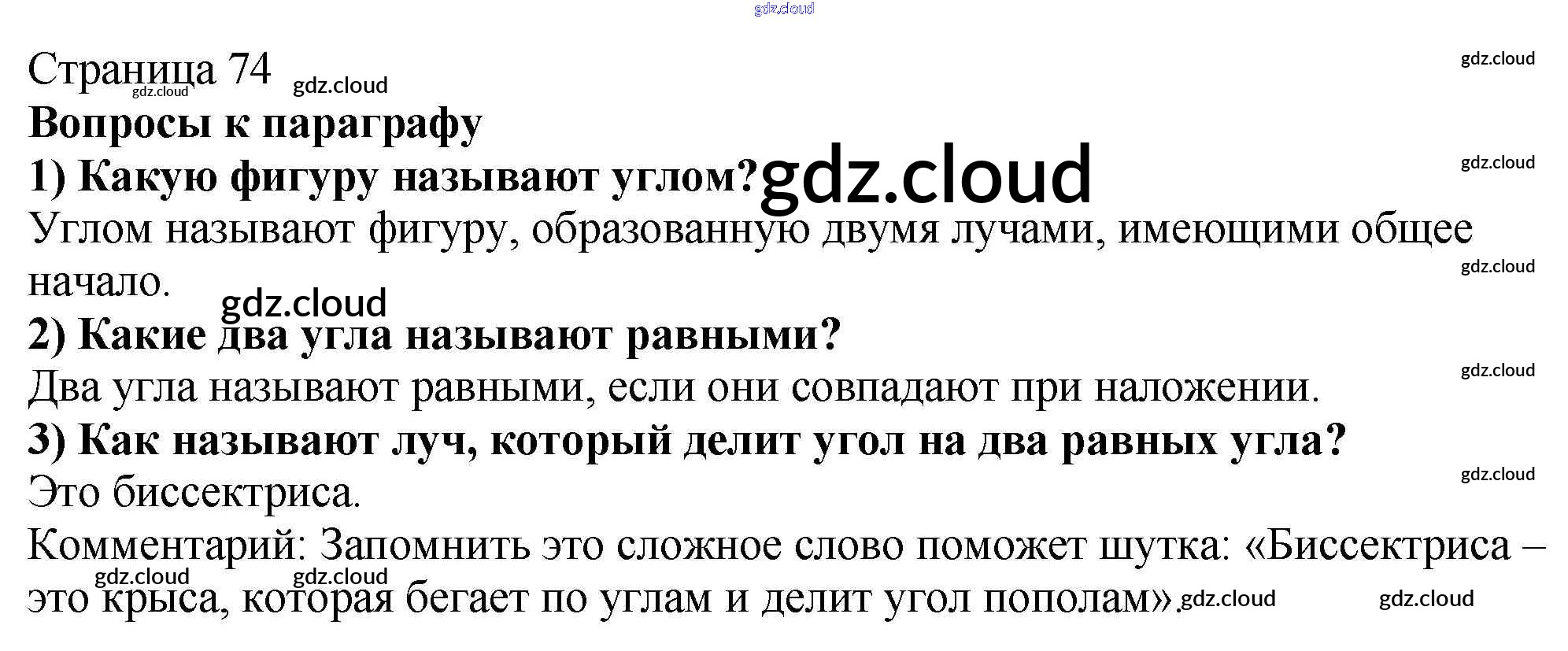 Вопросы (страница 74) §11. Угол. Обозначение углов по Математике 5 класс Учебник Мерзляк Алгоритм успеха Вентана-граф