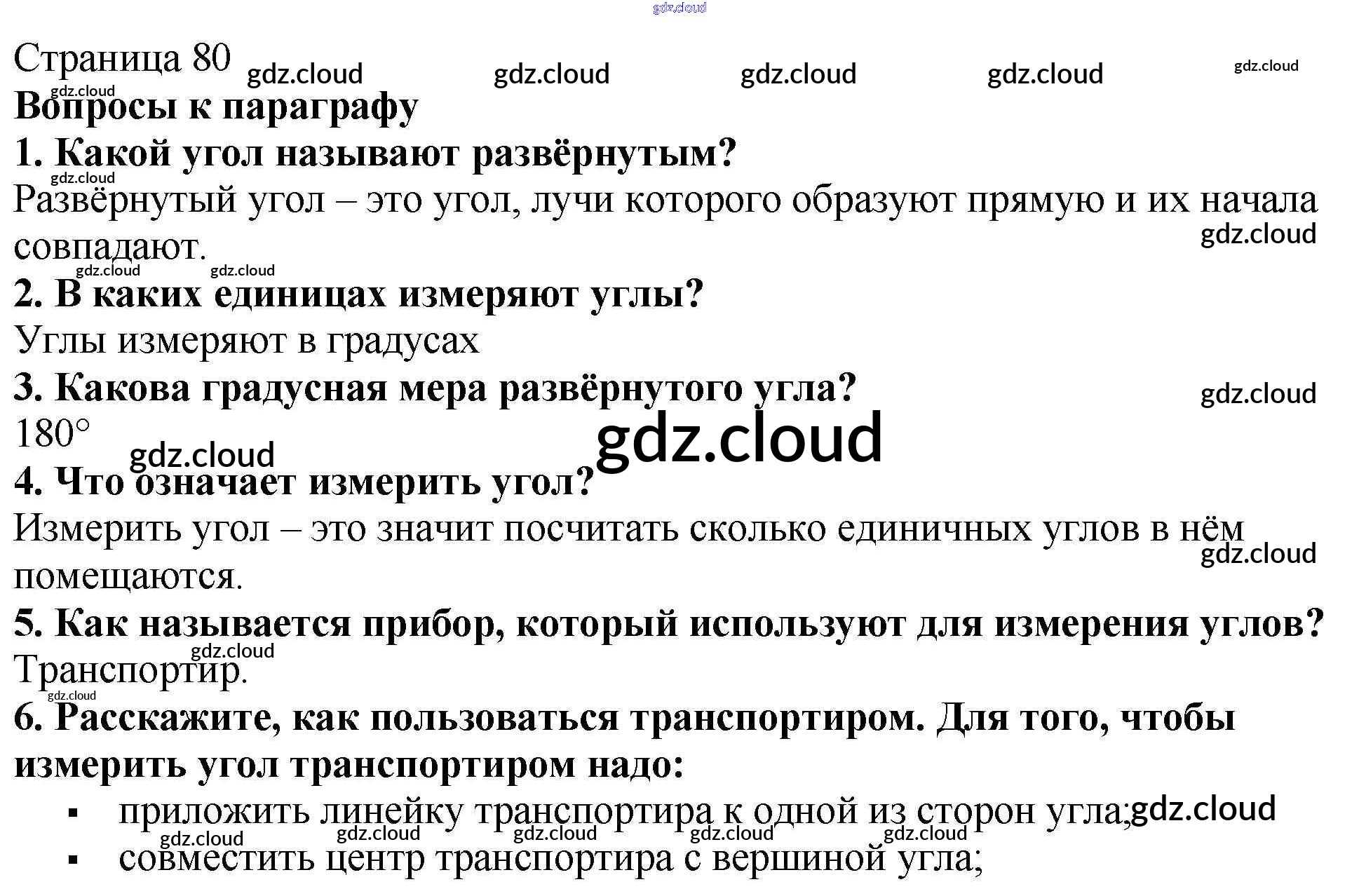 Вопросы (страницы 80-81) §12. Виды углов. Измерение углов по Математике 5 класс Учебник Мерзляк Алгоритм успеха Вентана-граф