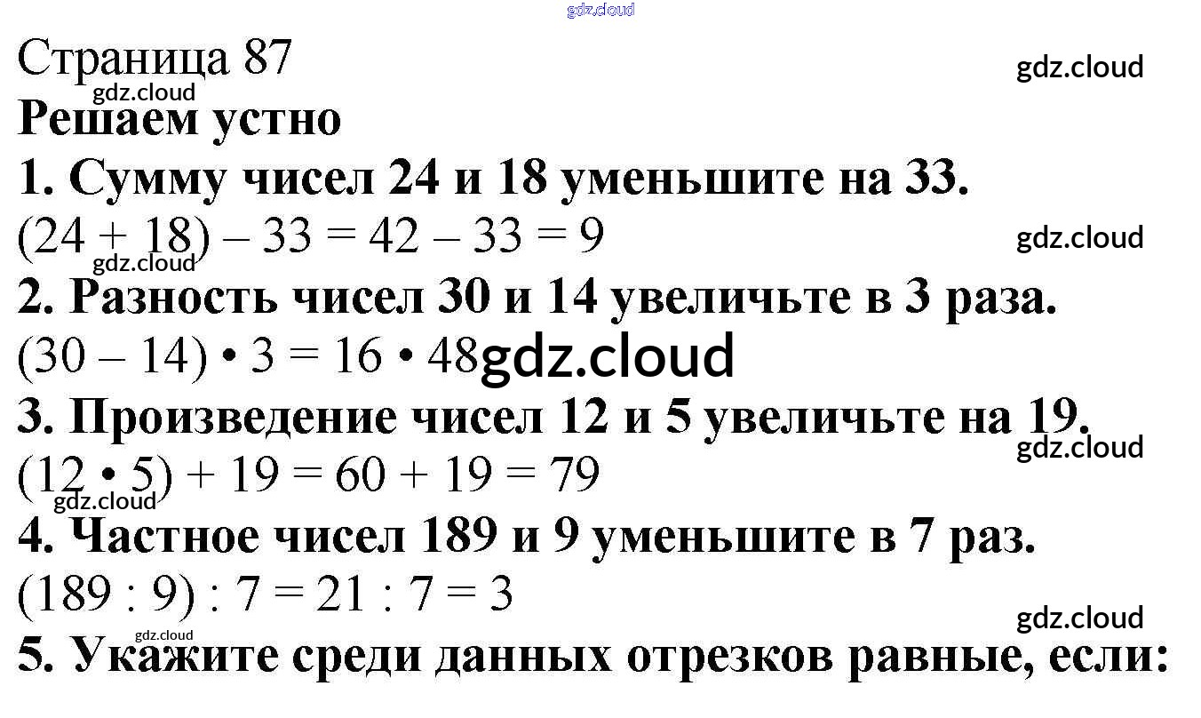 Ответ на задание страница 87 Учебник Математика за 5 (пятый) класс Мерзляк, Полонский, Якир Алгоритм успеха 2016