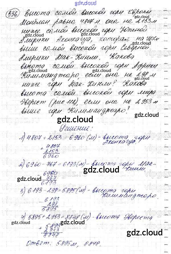 Ответ на задание 336 Учебник Математика за 5 (пятый) класс Мерзляк, Полонский, Якир Алгоритм успеха 2016