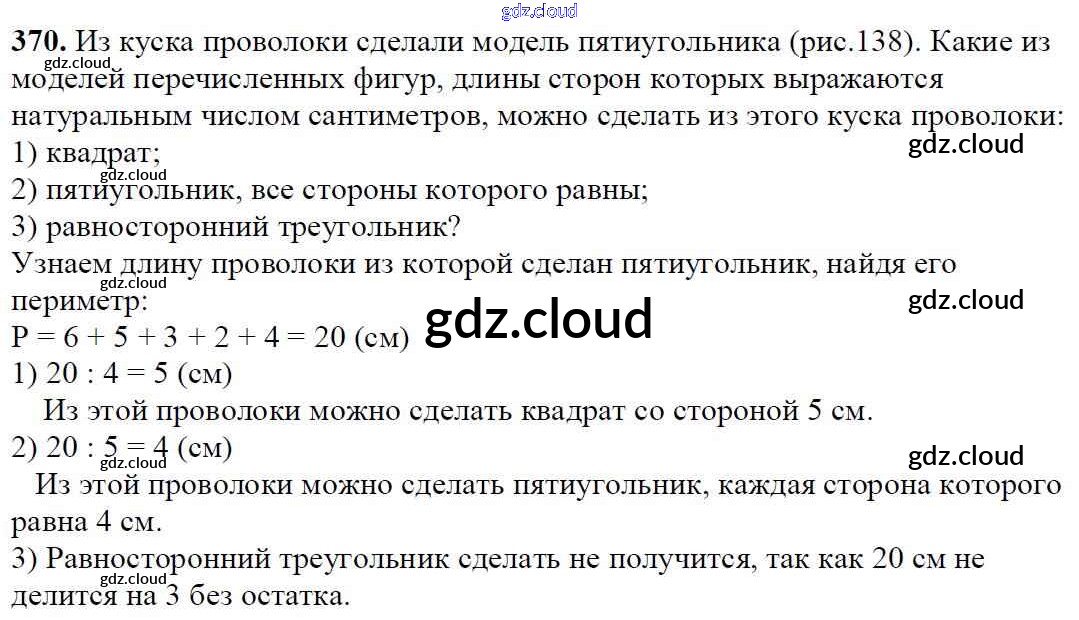 Ответ на задание 370 Учебник Математика за 5 (пятый) класс Мерзляк, Полонский, Якир Алгоритм успеха 2016