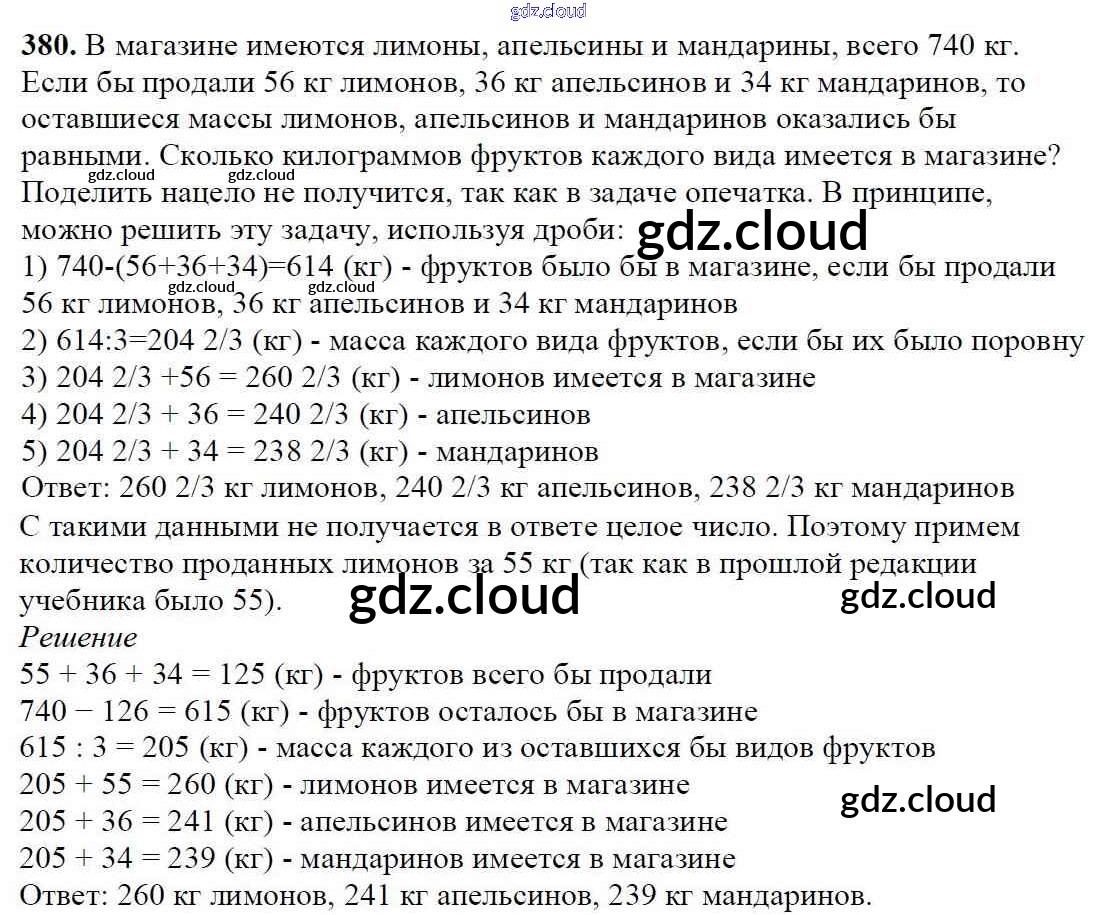 Ответ на задание 380 Учебник Математика за 5 (пятый) класс Мерзляк, Полонский, Якир Алгоритм успеха 2016