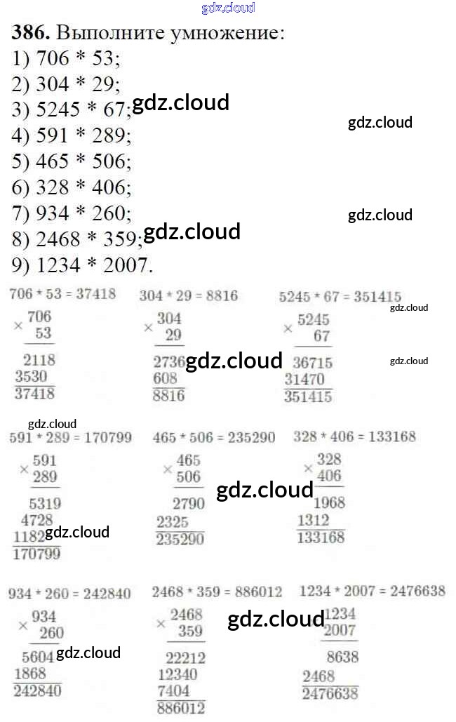 Ответ на задание 386 Учебник Математика за 5 (пятый) класс Мерзляк, Полонский, Якир Алгоритм успеха 2016