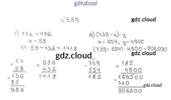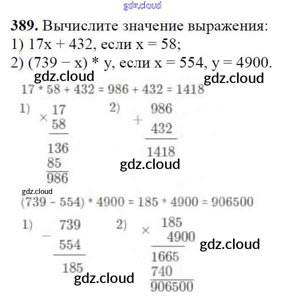 Ответ на задание 389 Учебник Математика за 5 (пятый) класс Мерзляк, Полонский, Якир Алгоритм успеха 2016