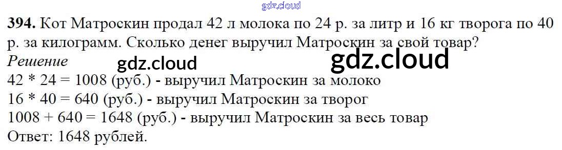 Ответ на задание 394 Учебник Математика за 5 (пятый) класс Мерзляк, Полонский, Якир Алгоритм успеха 2016