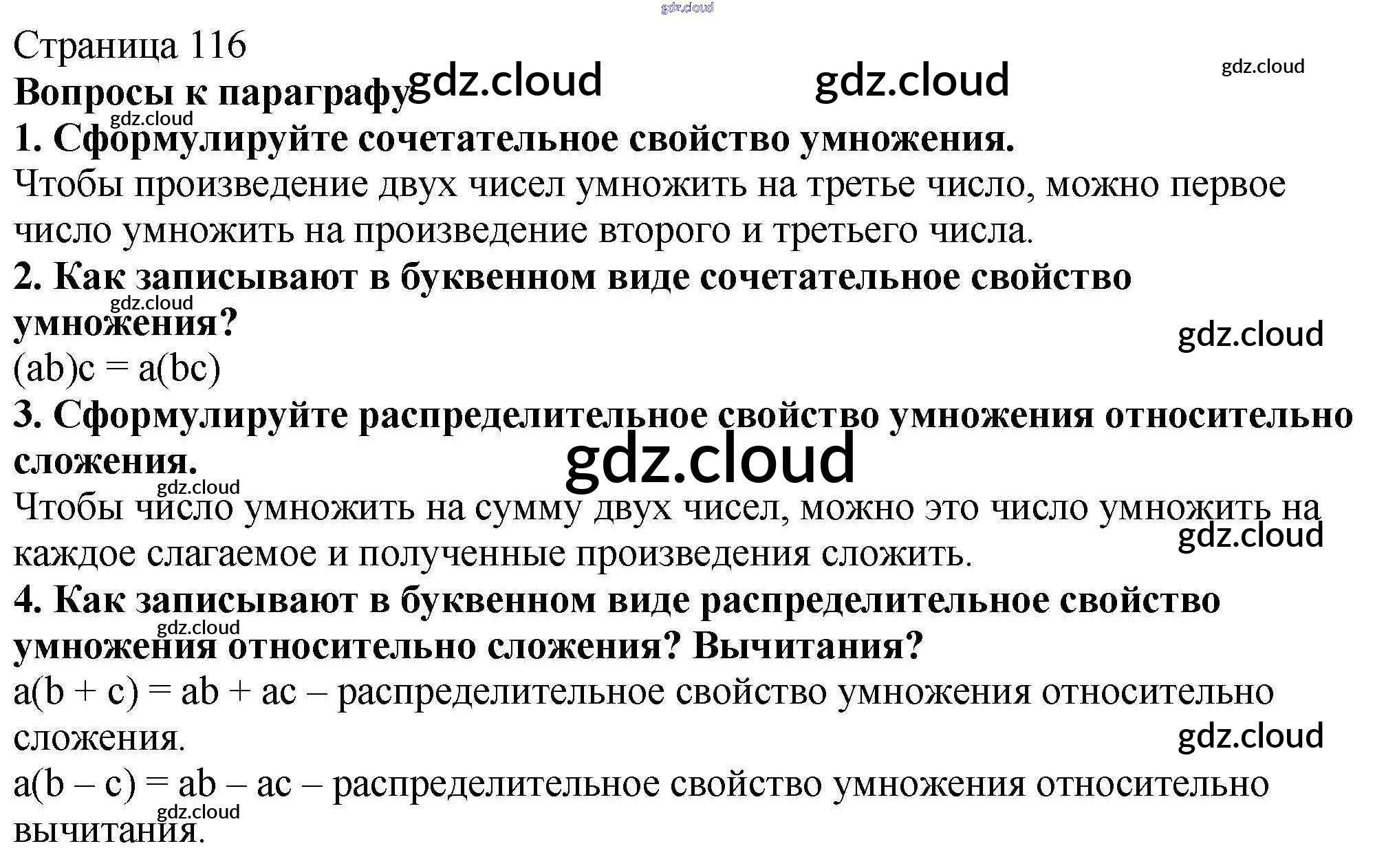 Вопросы (страница 116) §17. Сочетательное и распределительное свойства умножения по Математике 5 класс Учебник Мерзляк Алгоритм успеха Вентана-граф