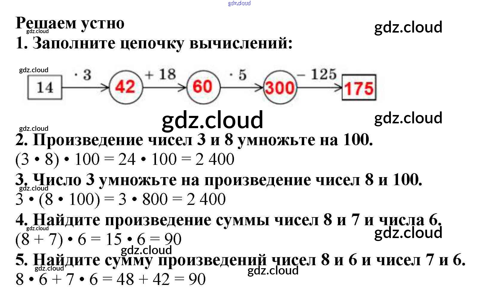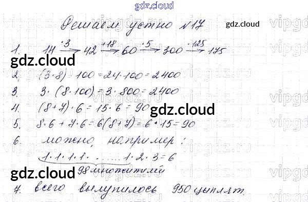 Решаем устно (страницы 116-117) §17. Сочетательное и распределительное свойства умножения по Математике 5 класс Учебник Мерзляк Алгоритм успеха Вентана-граф