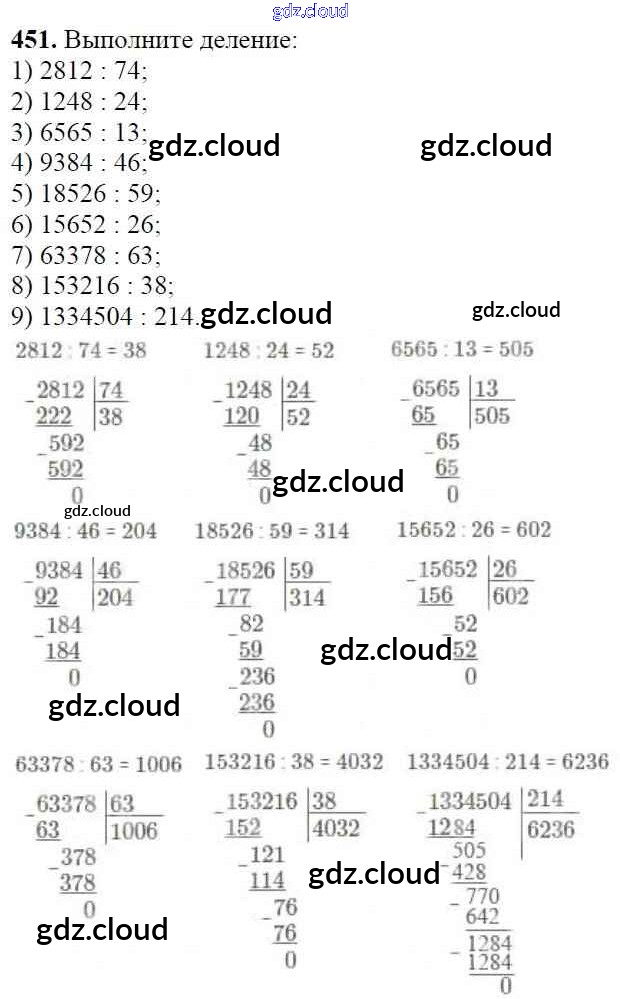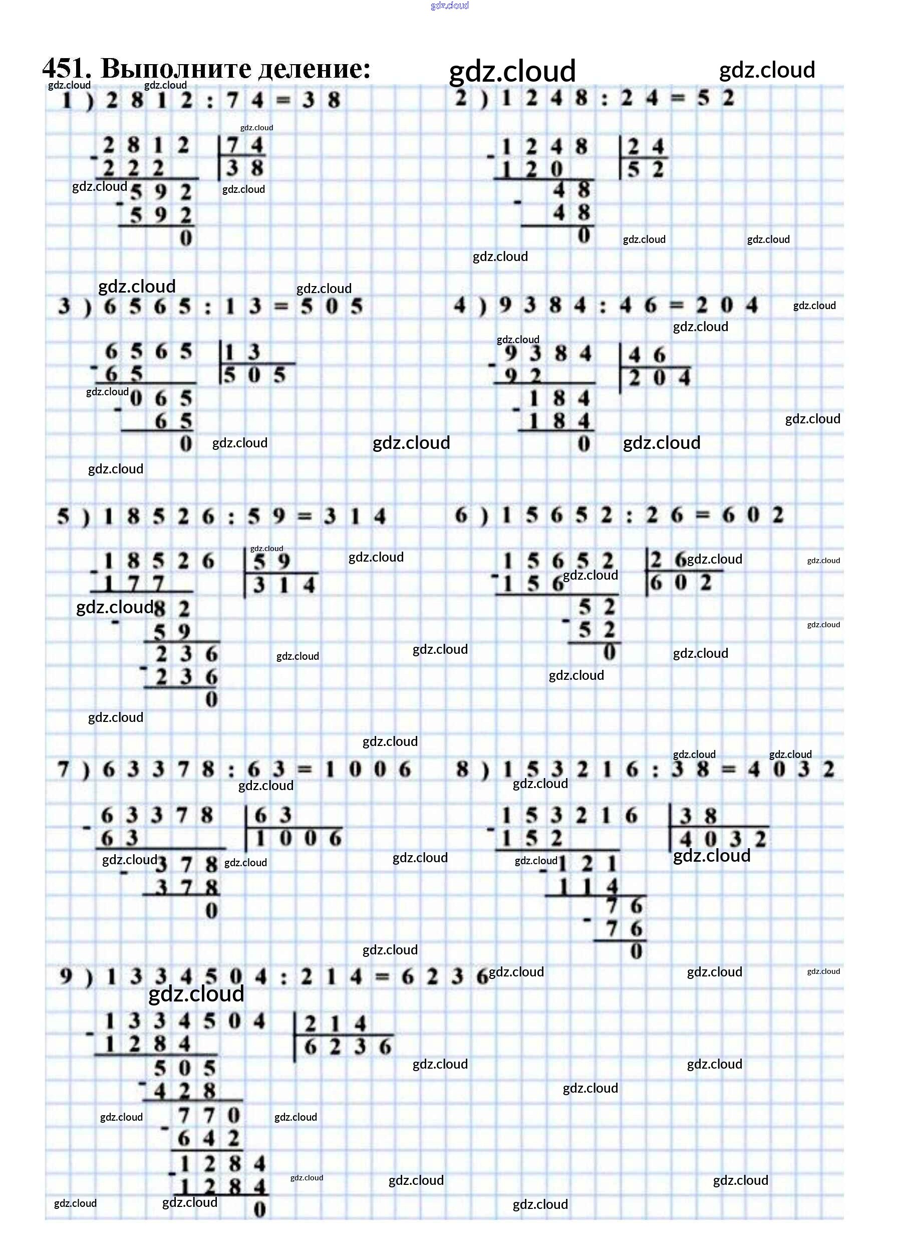 Ответ на задание 451 Учебник Математика за 5 (пятый) класс Мерзляк, Полонский, Якир Алгоритм успеха 2016