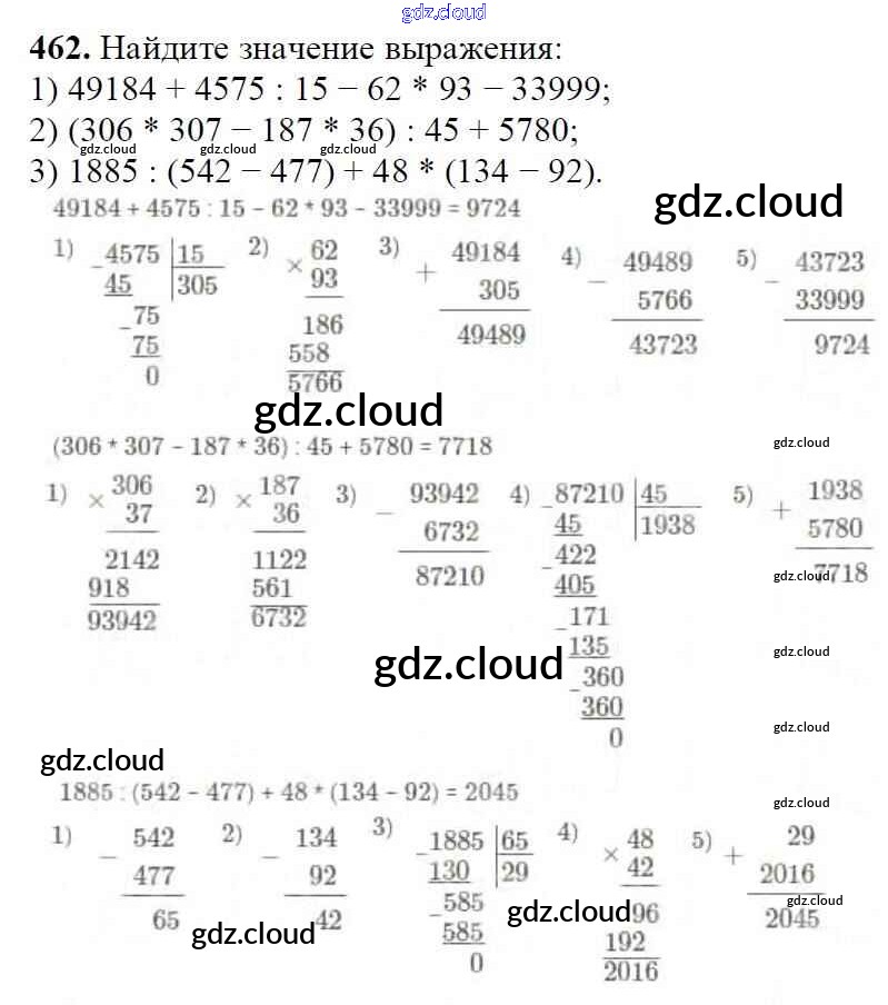 Ответ на задание 462 Учебник Математика за 5 (пятый) класс Мерзляк, Полонский, Якир Алгоритм успеха 2016