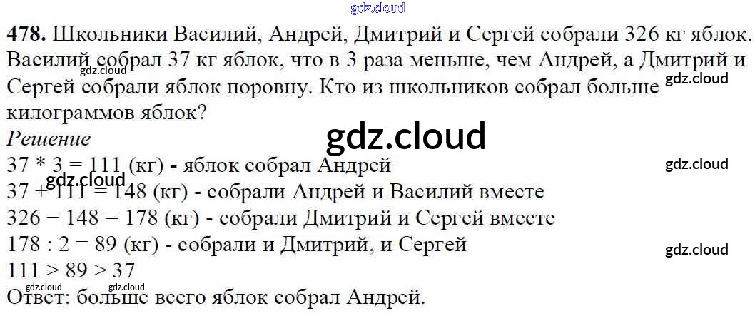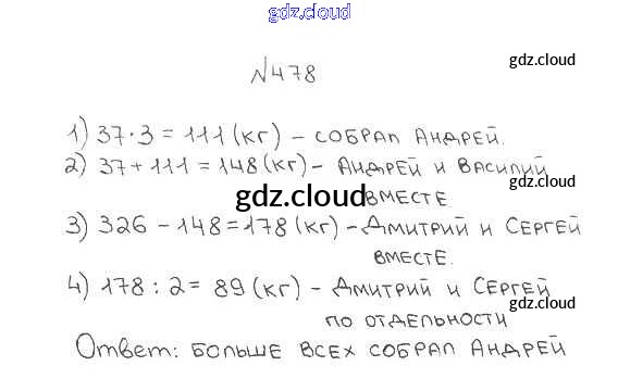Ответ на задание 478 Учебник Математика за 5 (пятый) класс Мерзляк, Полонский, Якир Алгоритм успеха 2016
