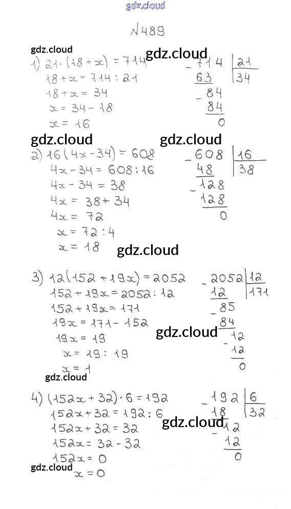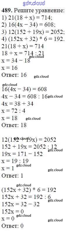 Ответ на задание 489 Учебник Математика за 5 (пятый) класс Мерзляк, Полонский, Якир Алгоритм успеха 2016