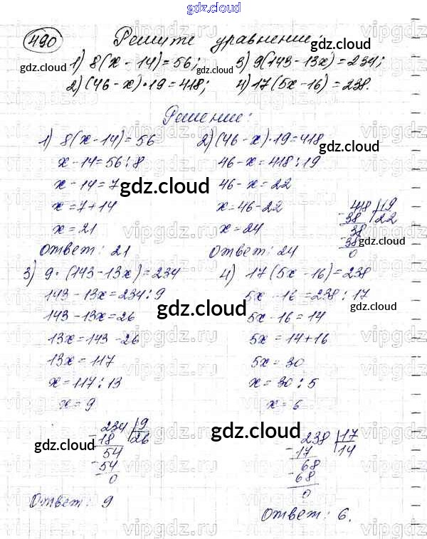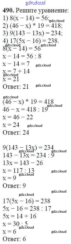 Ответ на задание 490 Учебник Математика за 5 (пятый) класс Мерзляк, Полонский, Якир Алгоритм успеха 2016