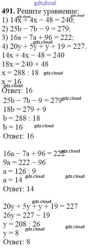 Ответ на задание 491 Учебник Математика за 5 (пятый) класс Мерзляк, Полонский, Якир Алгоритм успеха 2016