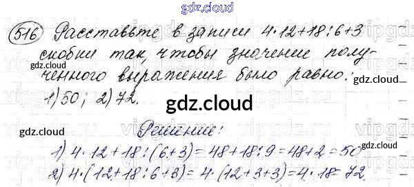 Ответ на задание 516 Учебник Математика за 5 (пятый) класс Мерзляк, Полонский, Якир Алгоритм успеха 2016