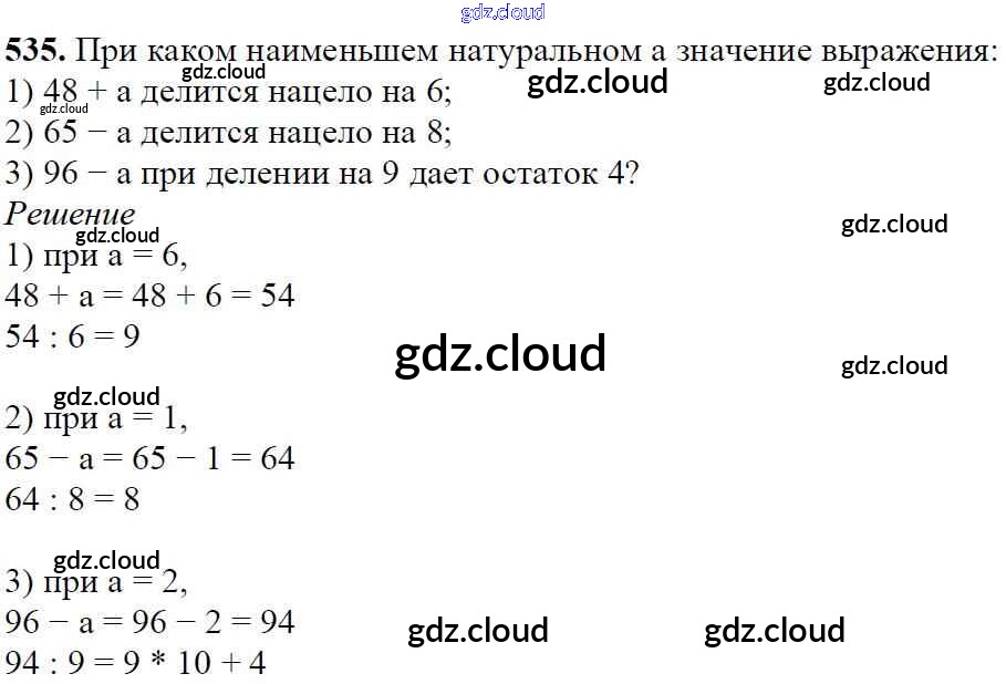 Ответ на задание 535 Учебник Математика за 5 (пятый) класс Мерзляк, Полонский, Якир Алгоритм успеха 2016