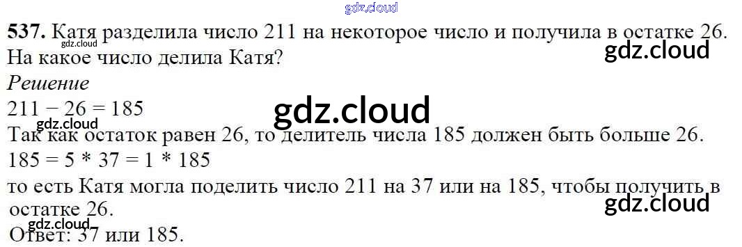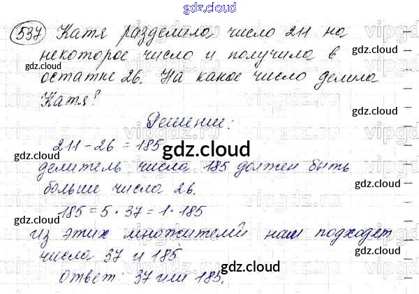 Ответ на задание 537 Учебник Математика за 5 (пятый) класс Мерзляк, Полонский, Якир Алгоритм успеха 2016
