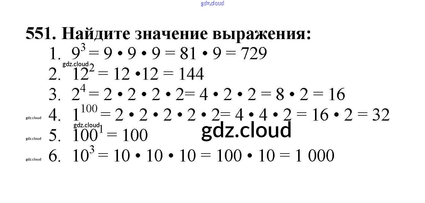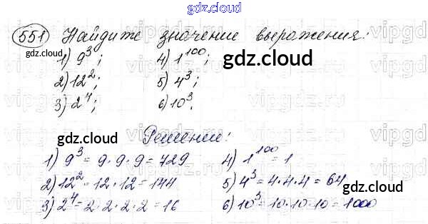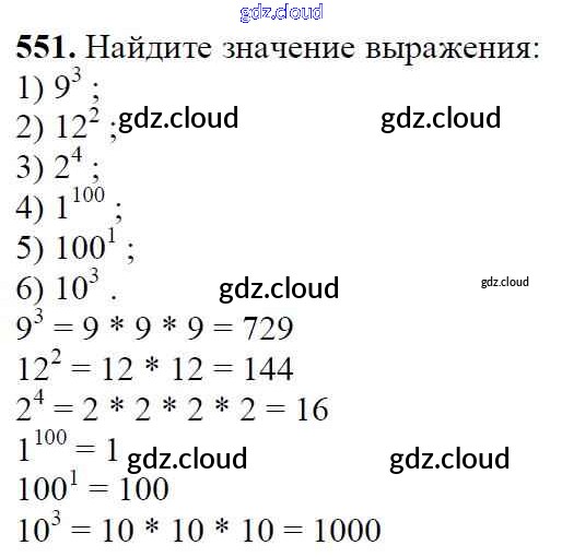 Ответ на задание 551 Учебник Математика за 5 (пятый) класс Мерзляк, Полонский, Якир Алгоритм успеха 2016