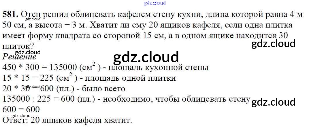 Ответ на задание 581 Учебник Математика за 5 (пятый) класс Мерзляк, Полонский, Якир Алгоритм успеха 2016
