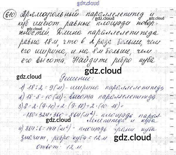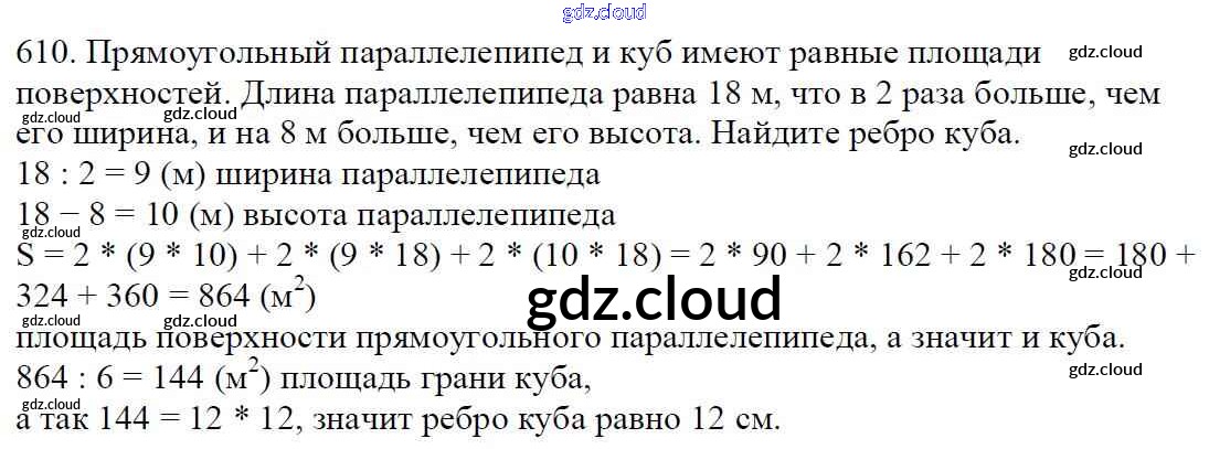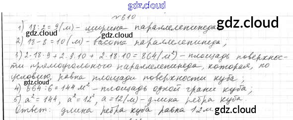 Ответ на задание 610 Учебник Математика за 5 (пятый) класс Мерзляк, Полонский, Якир Алгоритм успеха 2016