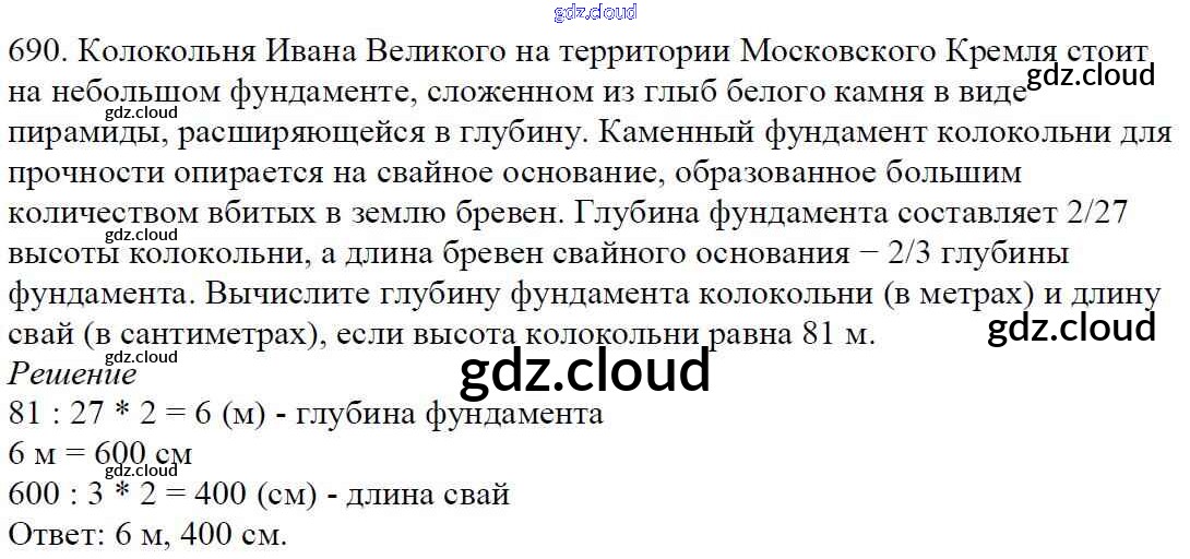 Ответ на задание 690 Учебник Математика за 5 (пятый) класс Мерзляк, Полонский, Якир Алгоритм успеха 2016