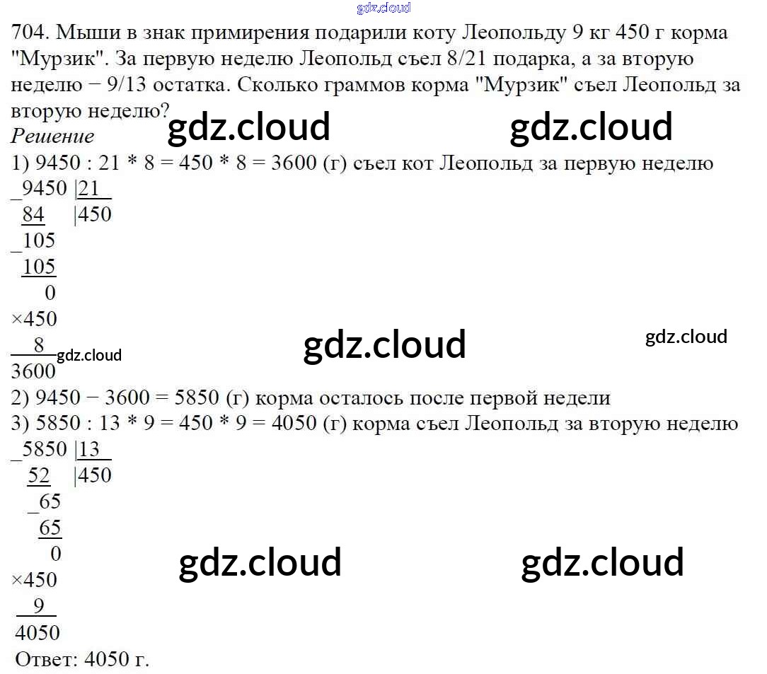 Ответ на задание 704 Учебник Математика за 5 (пятый) класс Мерзляк, Полонский, Якир Алгоритм успеха 2016
