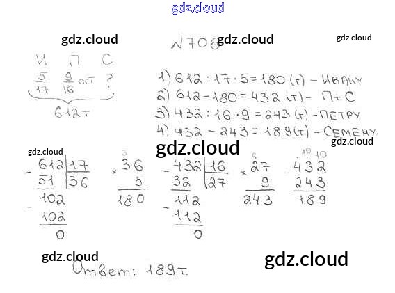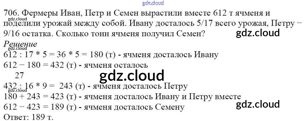 Ответ на задание 706 Учебник Математика за 5 (пятый) класс Мерзляк, Полонский, Якир Алгоритм успеха 2016