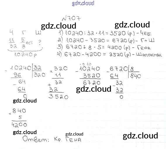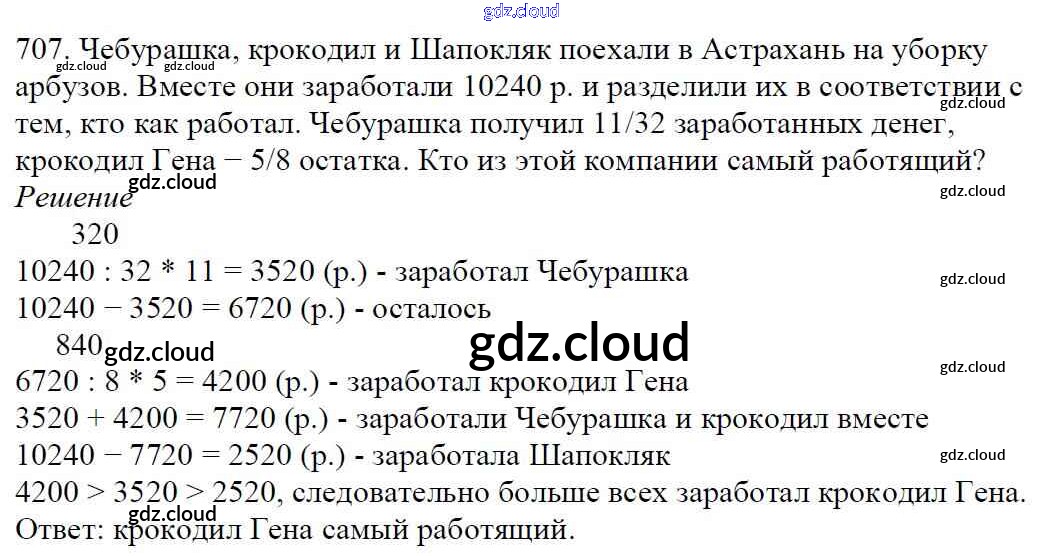 Ответ на задание 707 Учебник Математика за 5 (пятый) класс Мерзляк, Полонский, Якир Алгоритм успеха 2016