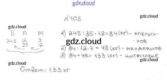 Ответ на задание 708 Учебник Математика за 5 (пятый) класс Мерзляк, Полонский, Якир Алгоритм успеха 2016