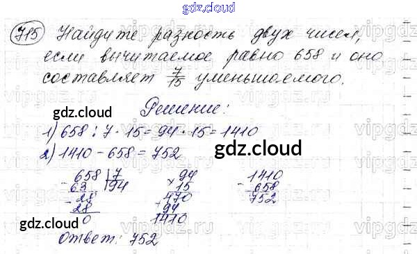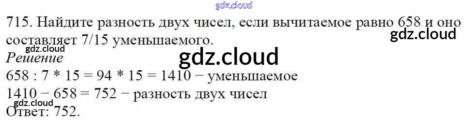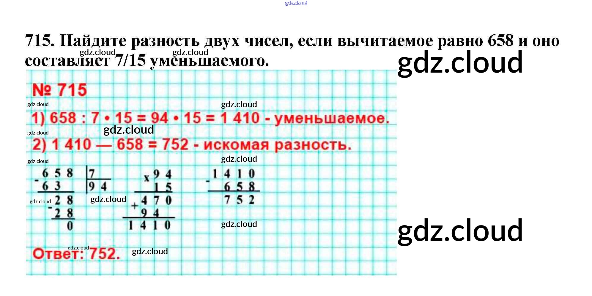 Ответ на задание 715 Учебник Математика за 5 (пятый) класс Мерзляк, Полонский, Якир Алгоритм успеха 2016