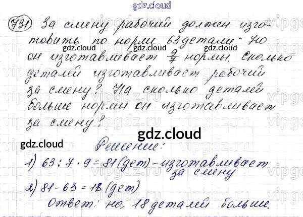 Ответ на задание 731 Учебник Математика за 5 (пятый) класс Мерзляк, Полонский, Якир Алгоритм успеха 2016
