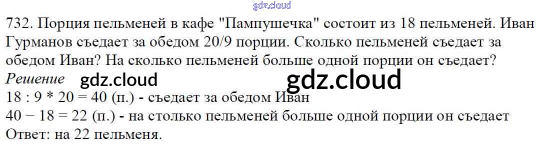 Ответ на задание 732 Учебник Математика за 5 (пятый) класс Мерзляк, Полонский, Якир Алгоритм успеха 2016