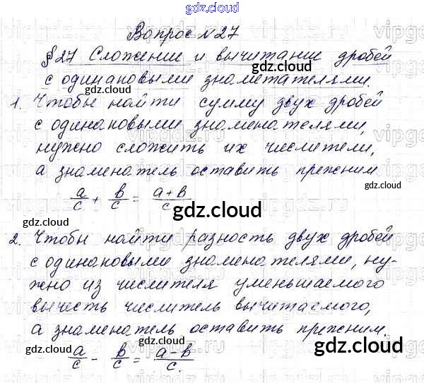 Вопросы (страница 188) §27. Сложение и вычитание дробей с одинаковыми знаменателями по Математике 5 класс Учебник Мерзляк Алгоритм успеха Вентана-граф