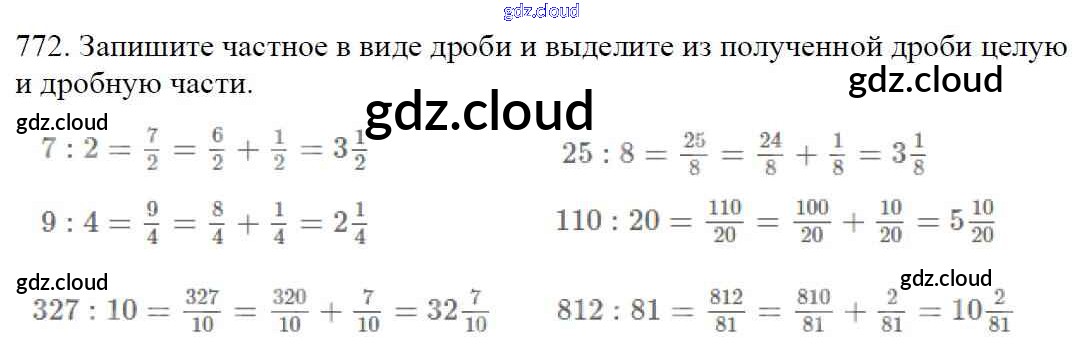 Ответ на задание 772 Учебник Математика за 5 (пятый) класс Мерзляк, Полонский, Якир Алгоритм успеха 2016