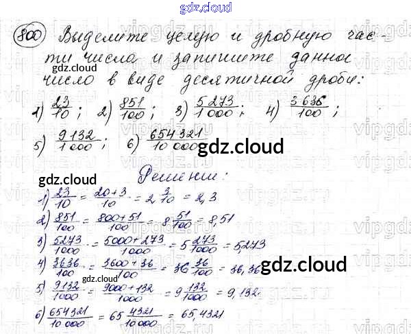 Ответ на задание 800 Учебник Математика за 5 (пятый) класс Мерзляк, Полонский, Якир Алгоритм успеха 2016