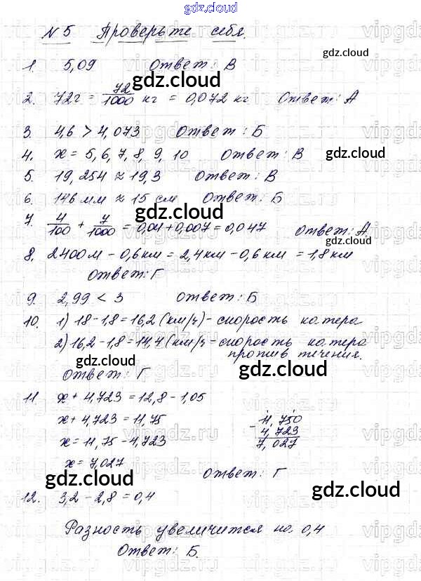 Проверь себя Ответы к главе 5. Десятичные дроби по Математике 5 класс Учебник Мерзляк Алгоритм успеха Вентана-граф