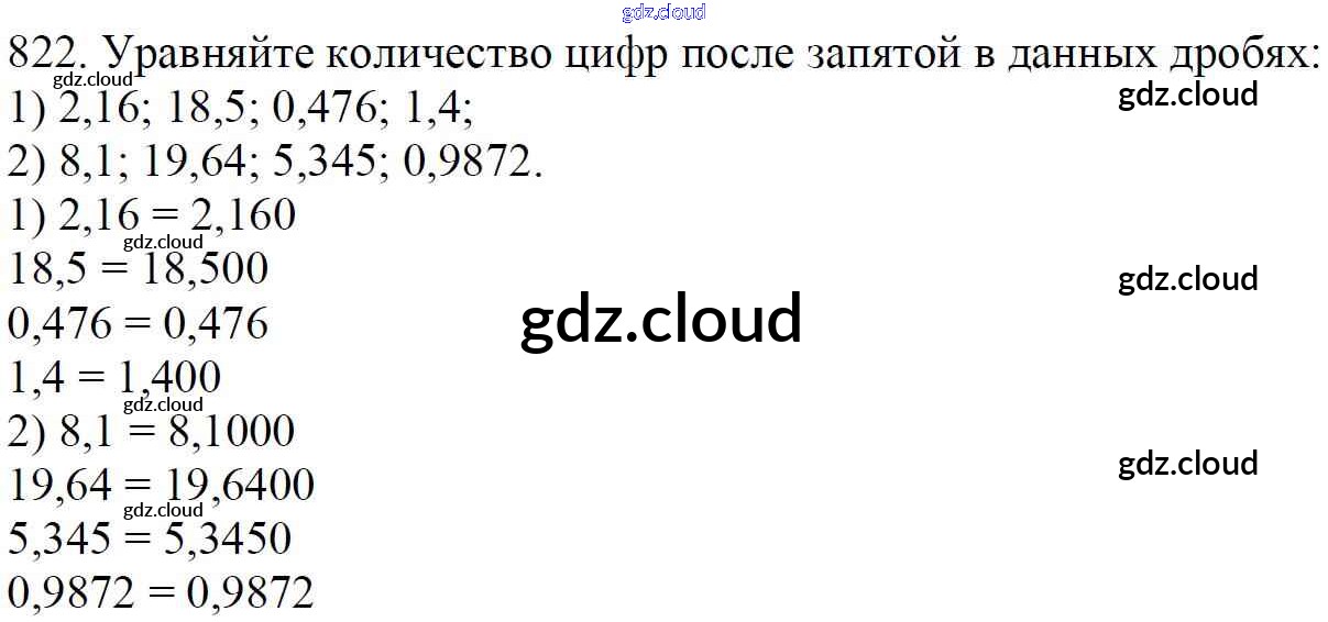 Ответ на задание 822 Учебник Математика за 5 (пятый) класс Мерзляк, Полонский, Якир Алгоритм успеха 2016