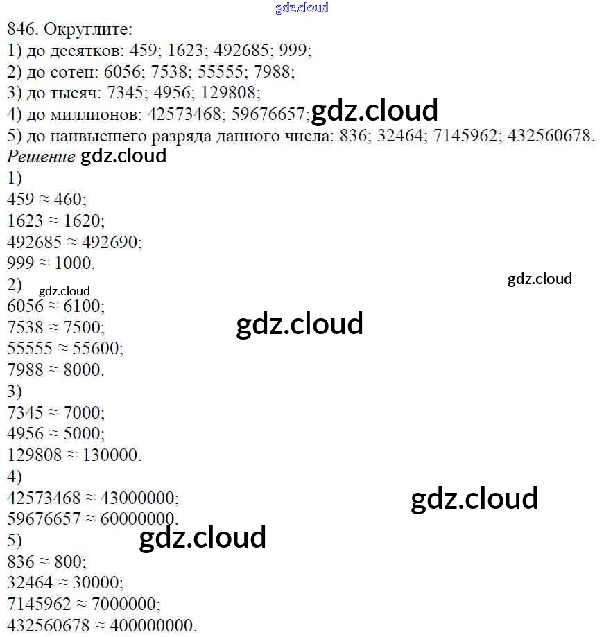 Ответ на задание 846 Учебник Математика за 5 (пятый) класс Мерзляк, Полонский, Якир Алгоритм успеха 2016