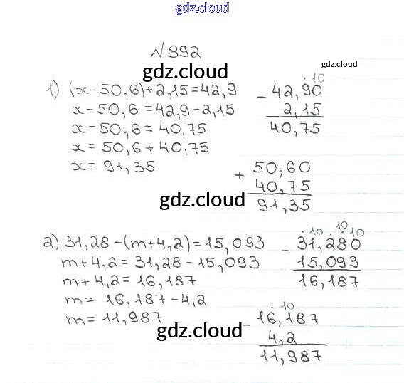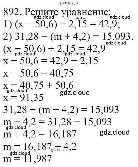 Ответ на задание 892 Учебник Математика за 5 (пятый) класс Мерзляк, Полонский, Якир Алгоритм успеха 2016