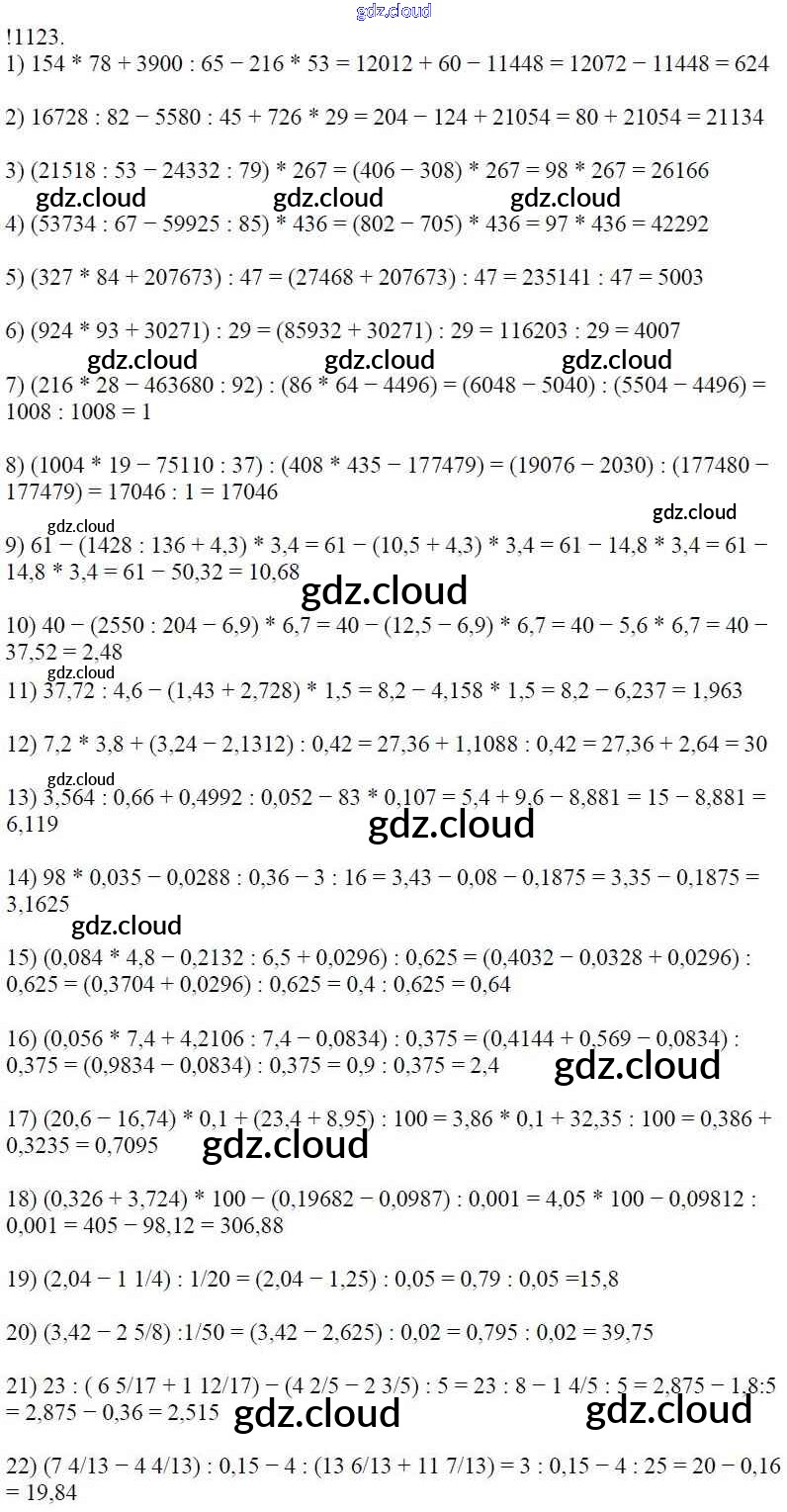 Ответ на задание 1123 Учебник Математика за 5 (пятый) класс Мерзляк, Полонский, Якир Алгоритм успеха 2016
