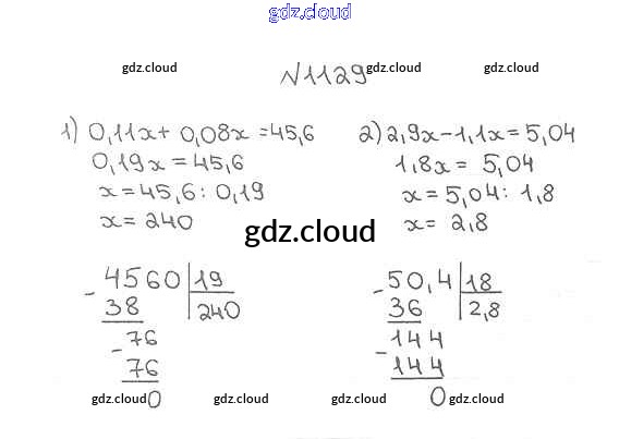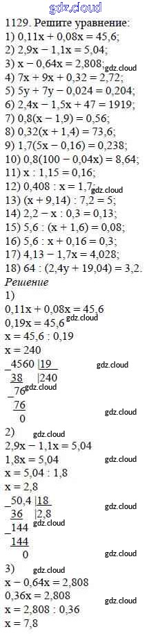 Ответ на задание 1129 Учебник Математика за 5 (пятый) класс Мерзляк, Полонский, Якир Алгоритм успеха 2016
