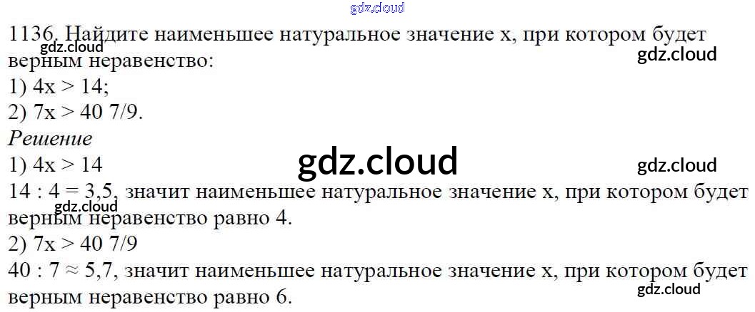 Ответ на задание 1136 Учебник Математика за 5 (пятый) класс Мерзляк, Полонский, Якир Алгоритм успеха 2016