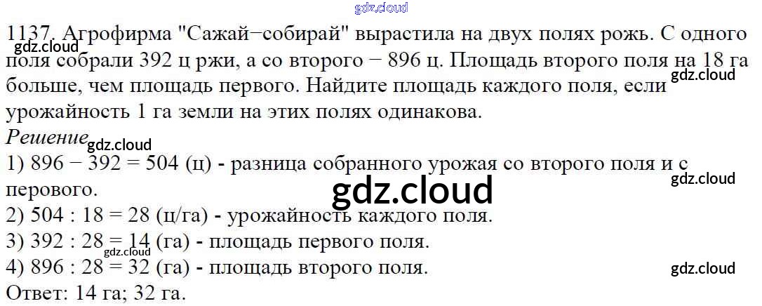 Ответ на задание 1137 Учебник Математика за 5 (пятый) класс Мерзляк, Полонский, Якир Алгоритм успеха 2016