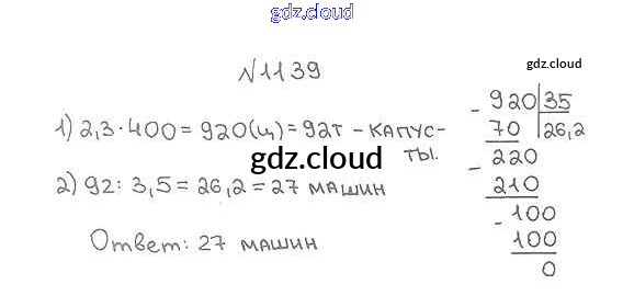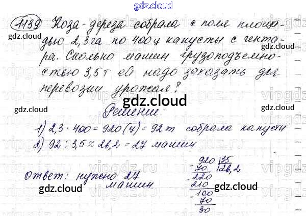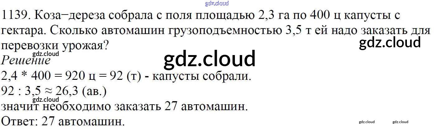 Ответ на задание 1139 Учебник Математика за 5 (пятый) класс Мерзляк, Полонский, Якир Алгоритм успеха 2016